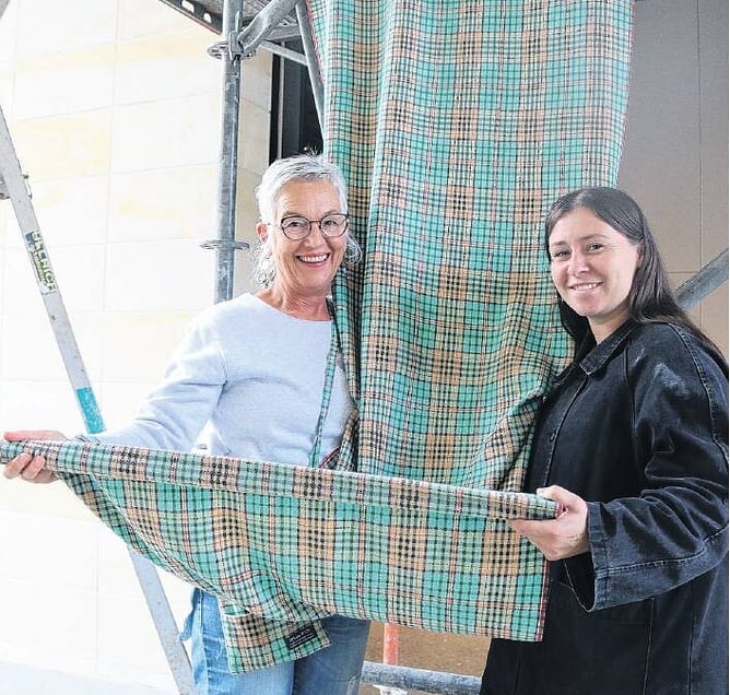 Weaver Sue McLean (left) and Forrester Gallery curator Anna McLean stand with the first 20 metres woven of the Waitaki tartan that will be officially launched in an installation in the new gallery extension next month. PHOTO: JULES CHIN