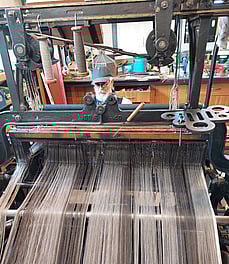 Weaving our Foulden Hills Collection.