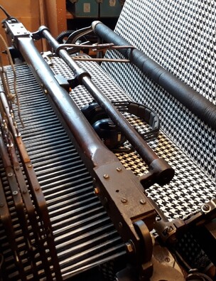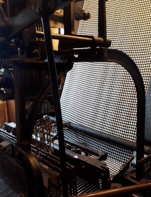This houndstooth fabric was woven on our c1900 Hatterley dobby loom, one of only five we believe are left in the world, and the oldest of only two still in production.