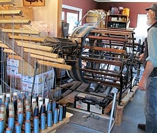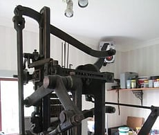 The answer is quite simple - we heard about the looms through a friend in 2005, and went to look at them in Lawrence, Rod fell in love with what he calls the "simple mechanics" of them, we bought them and shipped them to Oamaru where he restored them and taught himself to weave.