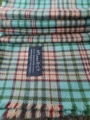 Finally, we have some Waitaki tartan scarves for sale. These are in limited numbers, from the first nearly 70 metres of tartan that Rod has woven. Once these are gone, there will be a wait for Rod to pedal the next 50 metres so Sue can make them up.